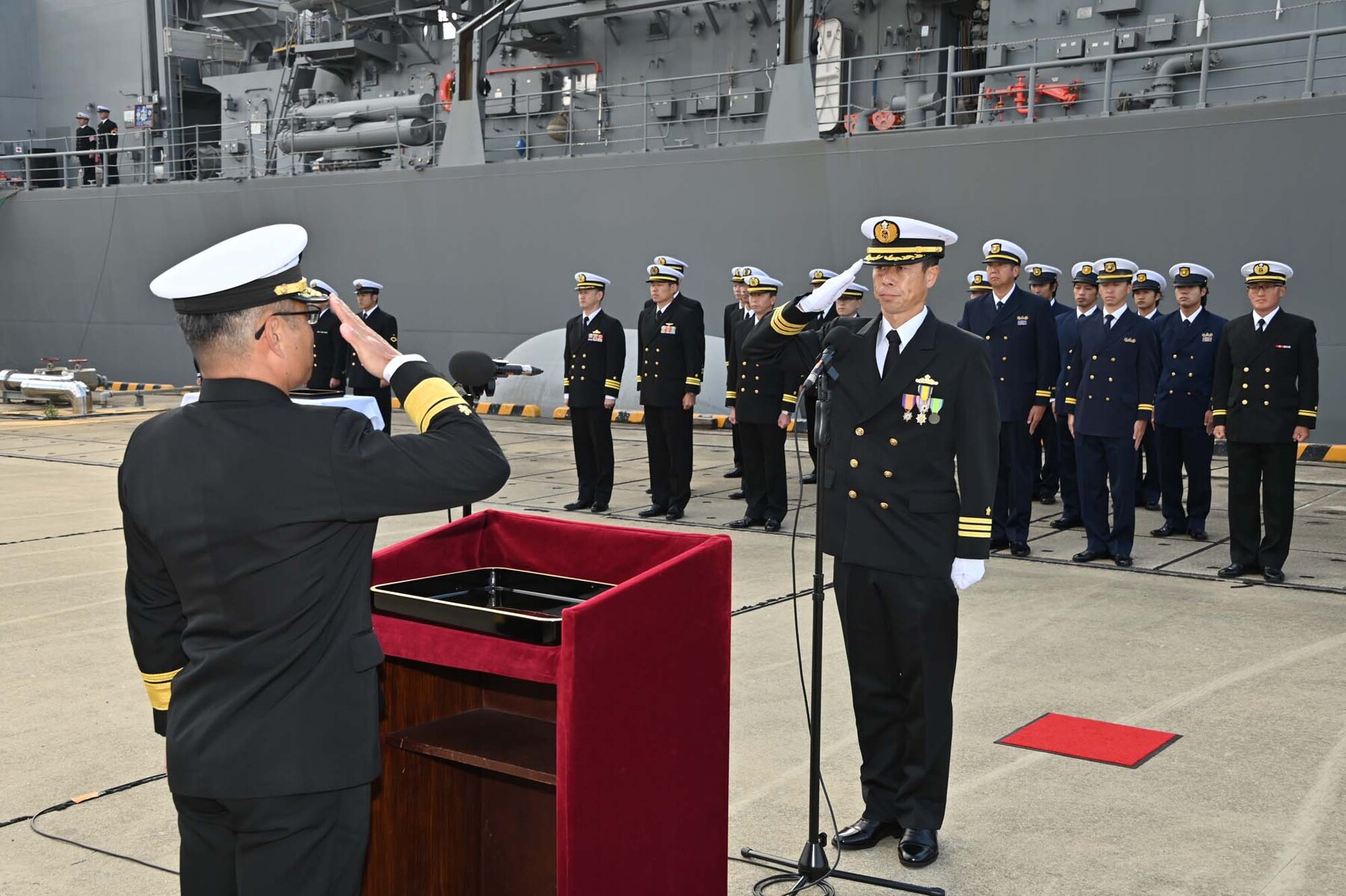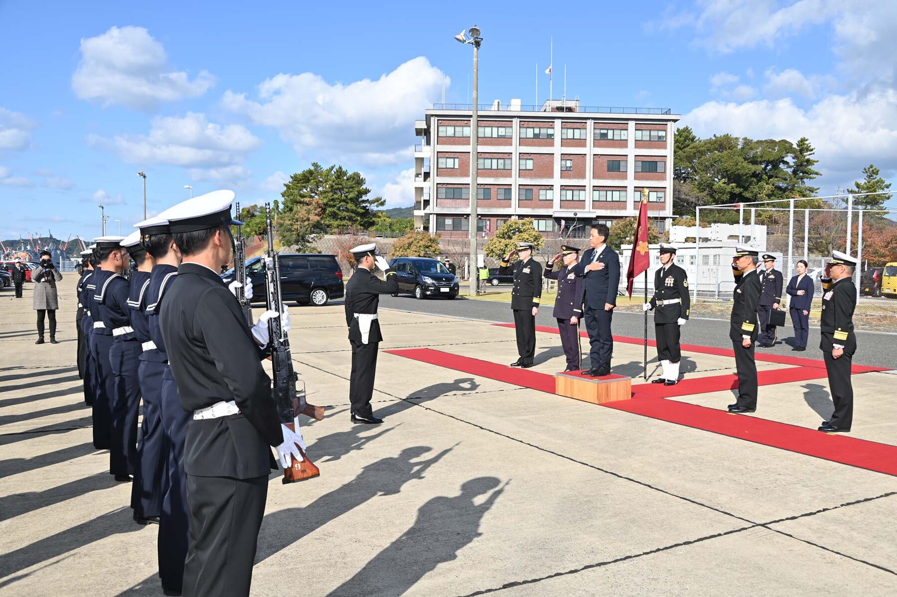 倉島岸壁には多くの関係者が足を運び、隊員らを温かく出迎えました。