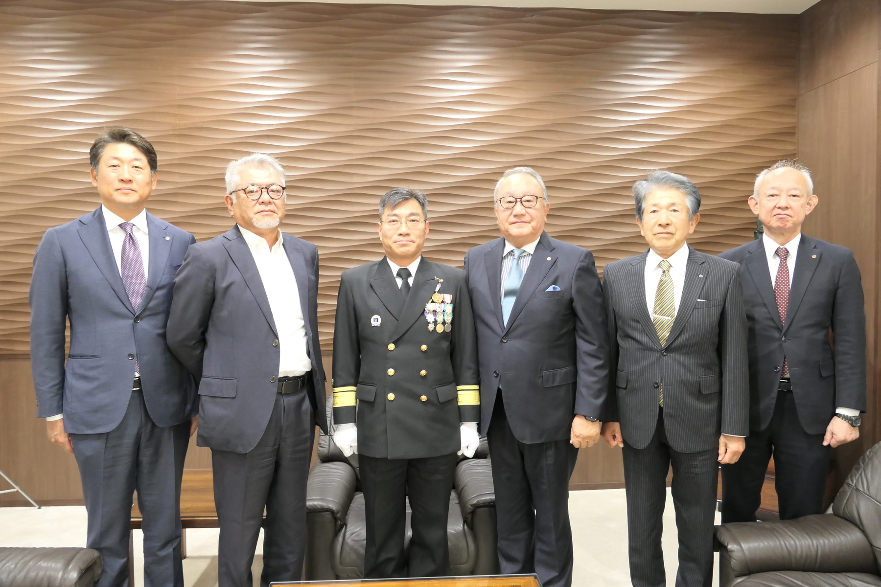 海上自衛隊第2護衛隊群司令の江畑泰孝海将補が離任挨拶のため来所されました。