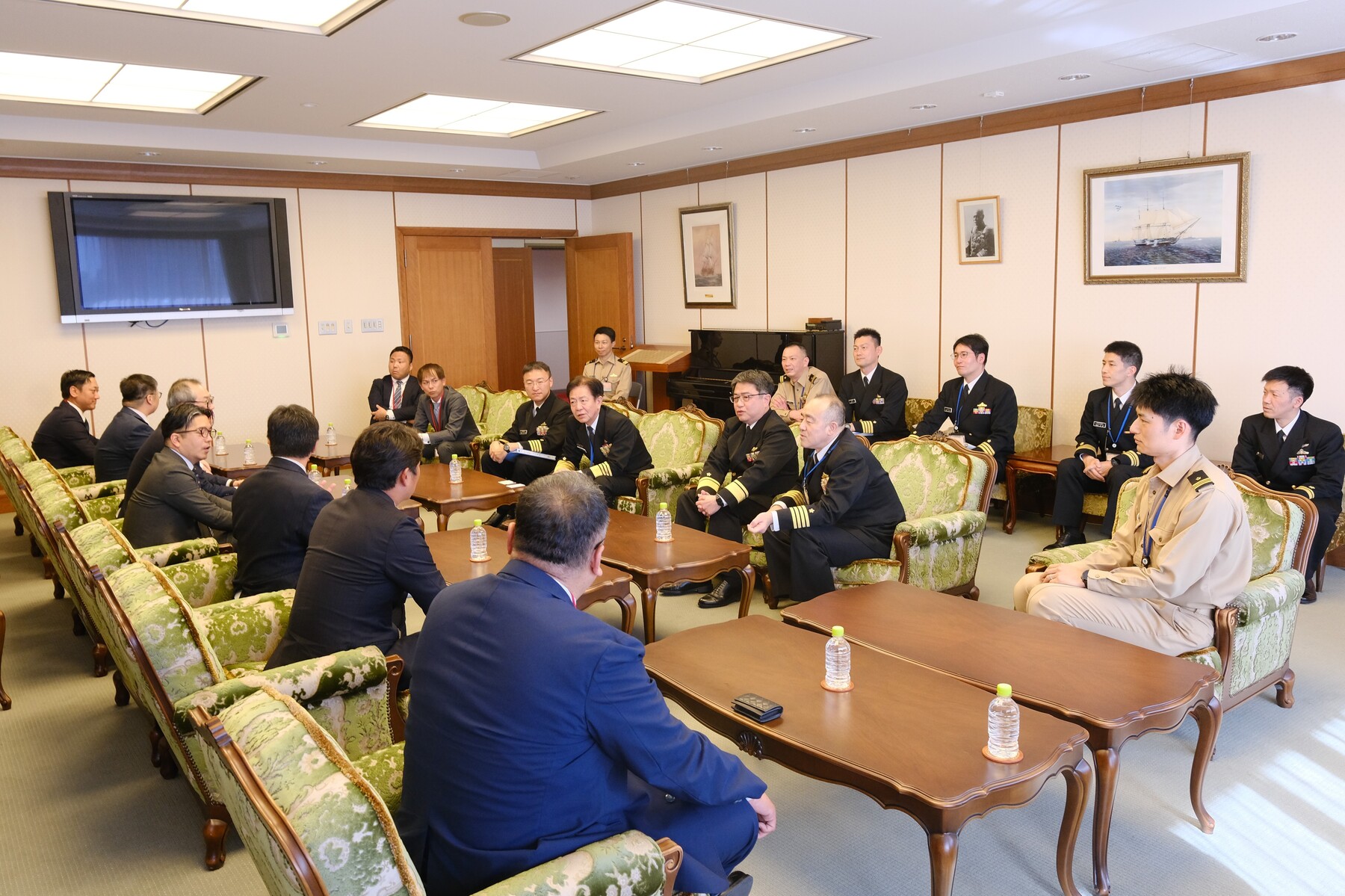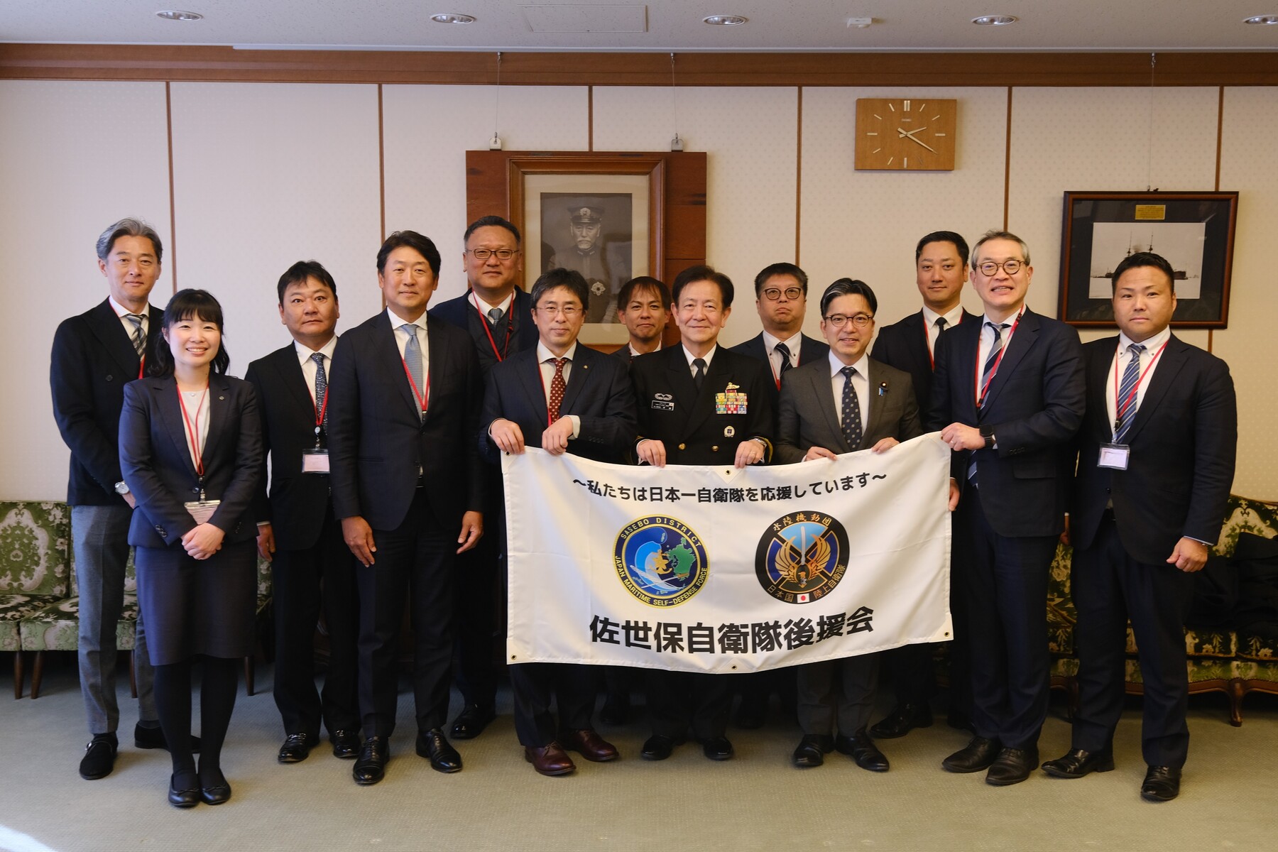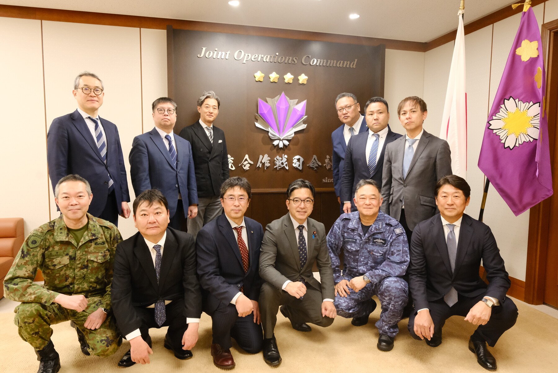 2月19日(木)、佐世保自衛隊後援会青年部(片桐康利会長)は金子容三内閣府大臣政務官と共に、東京市ヶ谷の防衛省を訪問し、海上幕僚長 齋藤聡海将ならびに統合作戦副司令官 俵千城海将、同作戦部長 北島一陸将補への表敬を行いました。