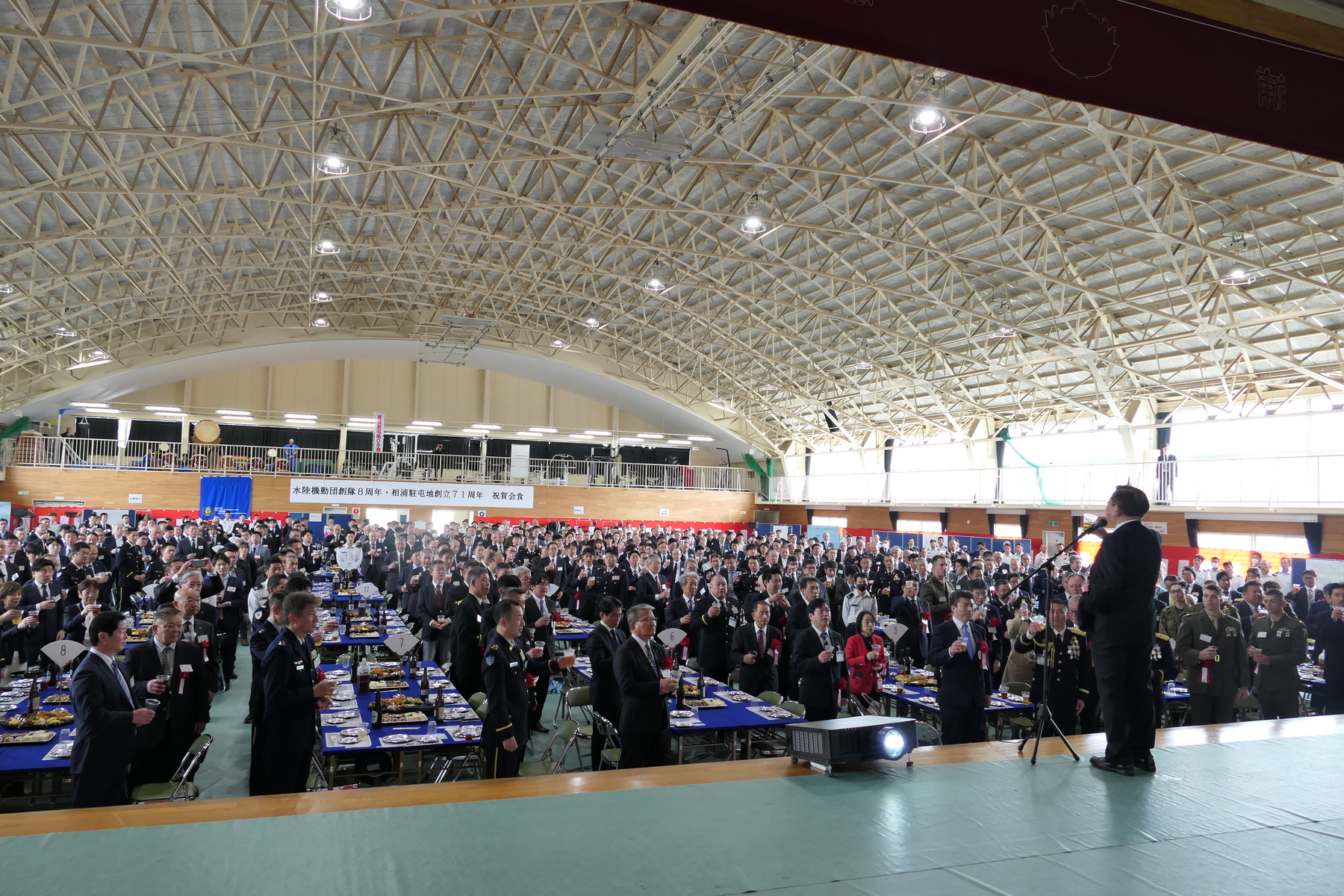 相浦駐屯地にて水陸機動団創隊8周年・相浦駐屯地創立71周年記念行事が開催され、県内外より約500名が参加しました。